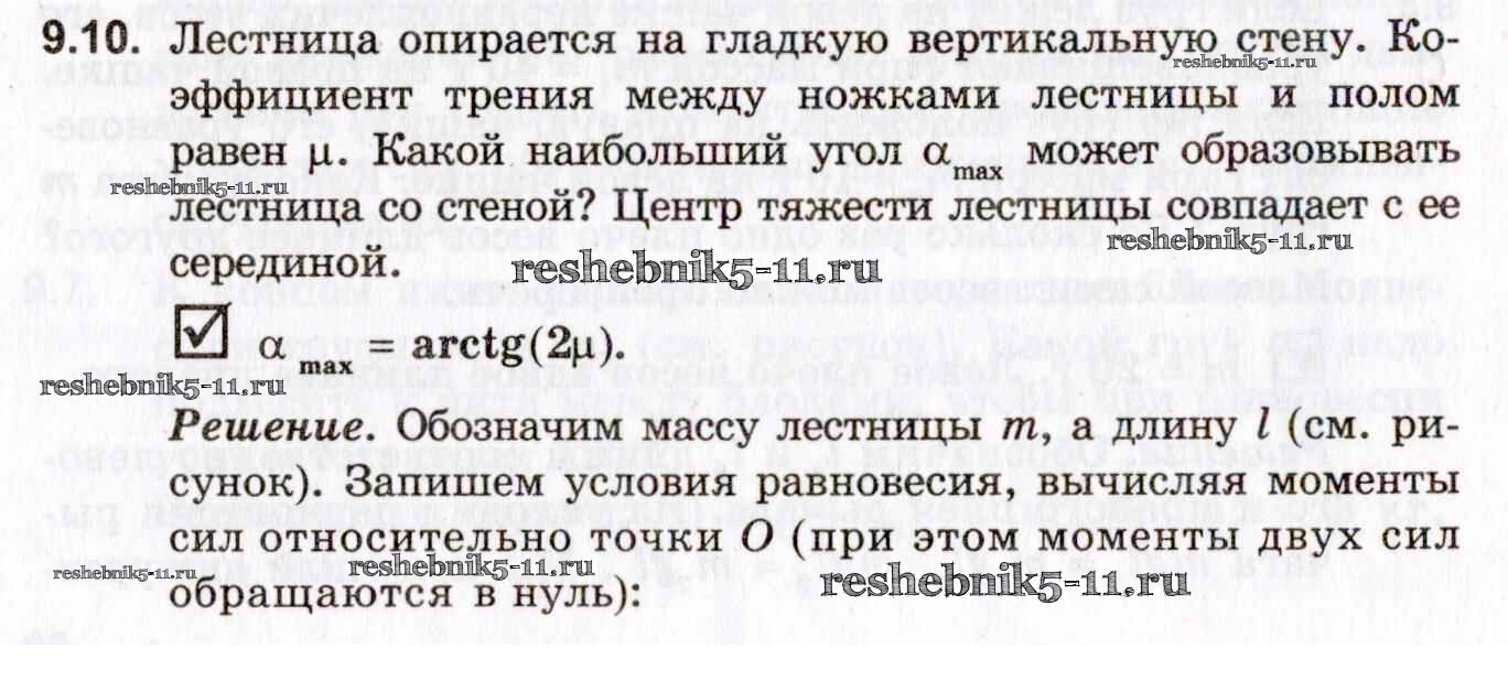 Готовая домашняя работа с ответами по Физике за 10, 11 класс Гельфгат, Генденштейн, Кирик Задачник Профильный уровень Илекса 2021 - 9. Элементы статики 9.10