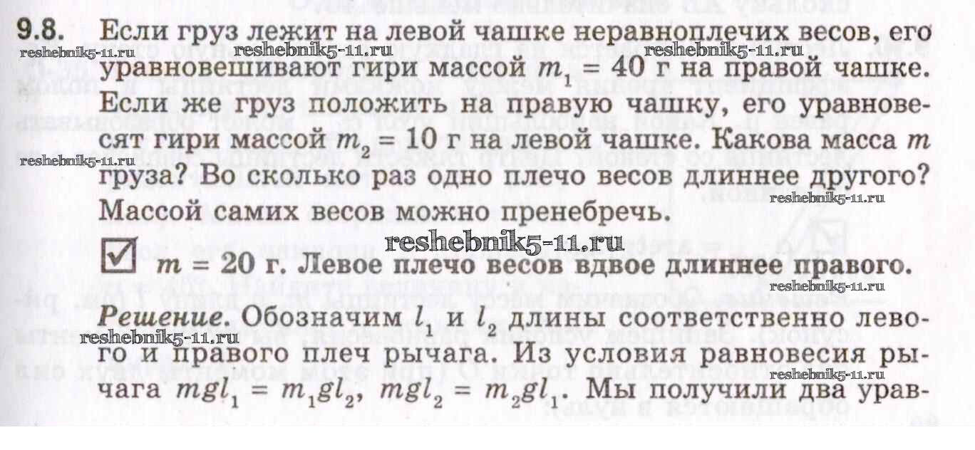 Готовая домашняя работа с ответами по Физике за 10, 11 класс Гельфгат, Генденштейн, Кирик Задачник Профильный уровень Илекса 2021 - 9. Элементы статики 9.8