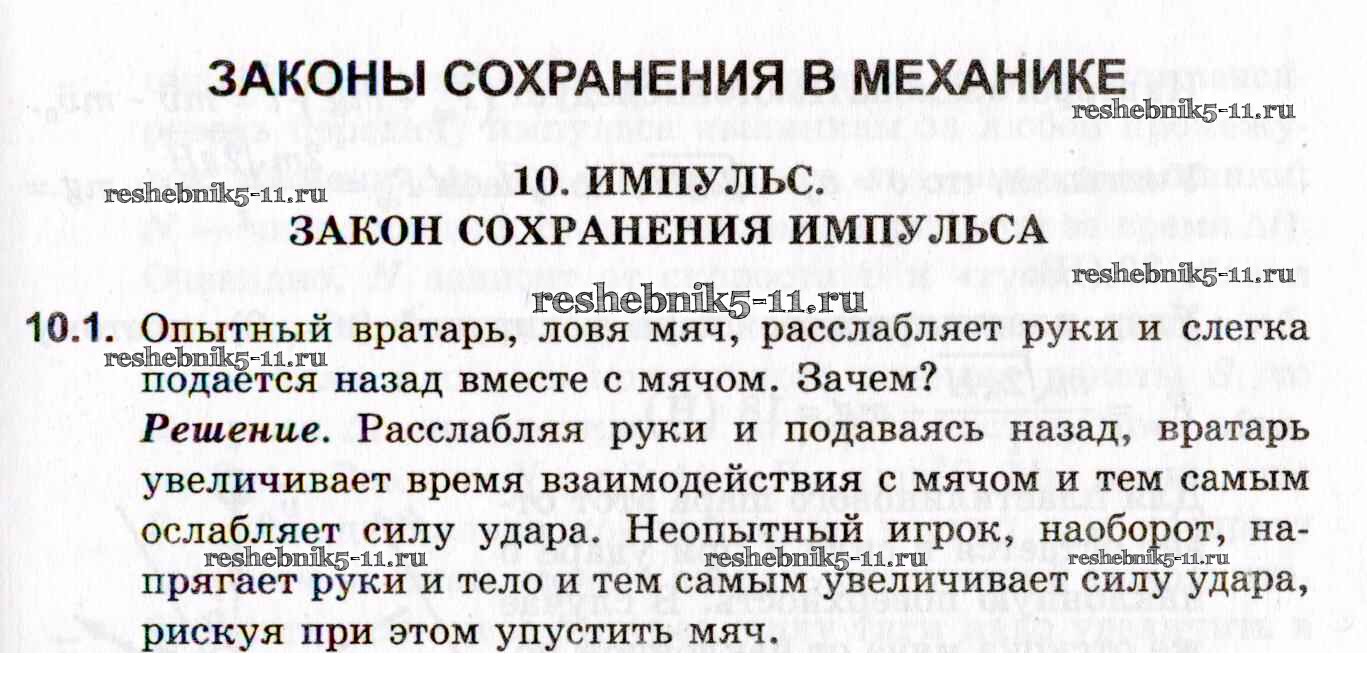 Готовая домашняя работа с ответами по Физике за 10, 11 класс Гельфгат, Генденштейн, Кирик Задачник Профильный уровень Илекса 2021 - 10. Импульс. Закон сохранения импульса 10.1