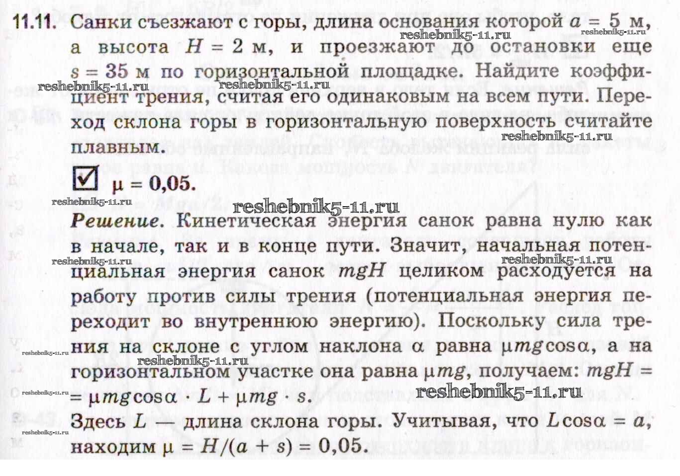 Готовая домашняя работа с ответами по Физике за 10, 11 класс Гельфгат, Генденштейн, Кирик Задачник Профильный уровень Илекса 2021 - 11. Механическая работа. Энергия. Закон сохранения энергии 11.11