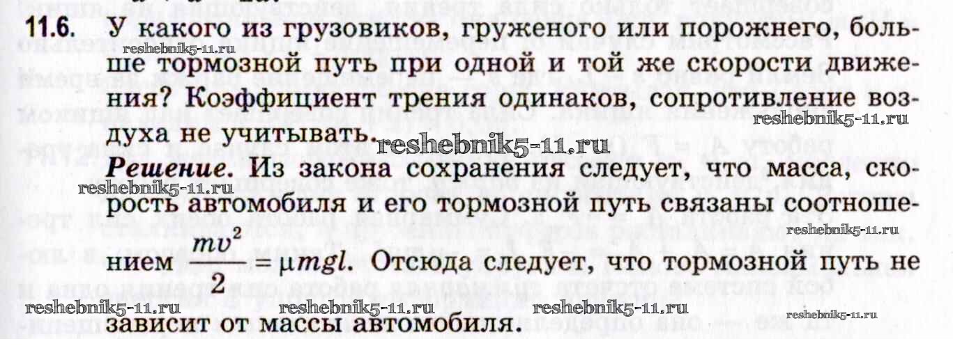 Готовая домашняя работа с ответами по Физике за 10, 11 класс Гельфгат, Генденштейн, Кирик Задачник Профильный уровень Илекса 2021 - 11. Механическая работа. Энергия. Закон сохранения энергии 11.6