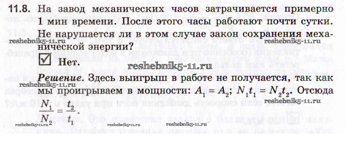 Готовая домашняя работа с ответами по Физике за 10, 11 класс Гельфгат, Генденштейн, Кирик Задачник Профильный уровень Илекса 2021 - 11. Механическая работа. Энергия. Закон сохранения энергии 11.8