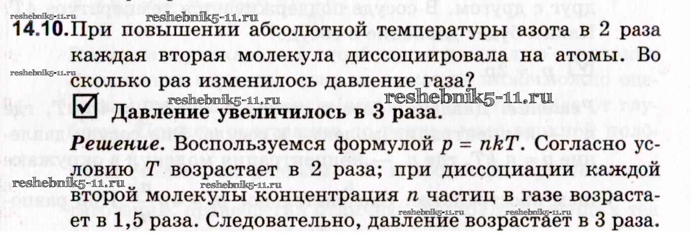 Готовая домашняя работа с ответами по Физике за 10, 11 класс Гельфгат, Генденштейн, Кирик Задачник Профильный уровень Илекса 2021 - 14. Молекулярно-кинетическая теория 14.10