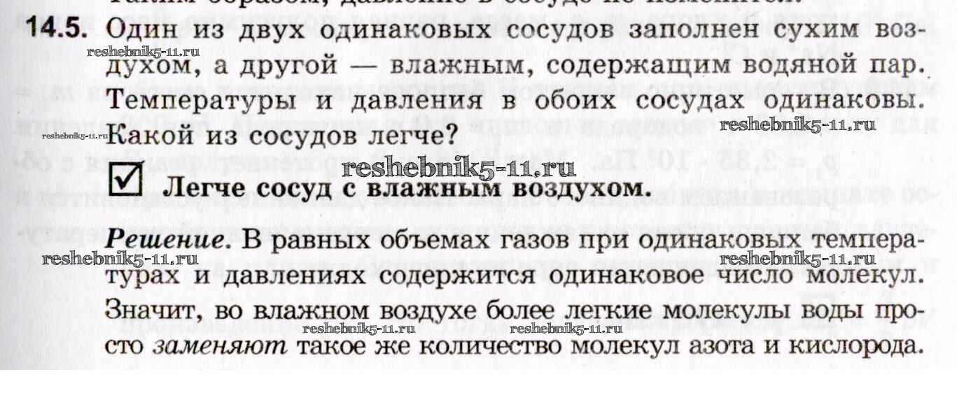 Готовая домашняя работа с ответами по Физике за 10, 11 класс Гельфгат, Генденштейн, Кирик Задачник Профильный уровень Илекса 2021 - 14. Молекулярно-кинетическая теория 14.5