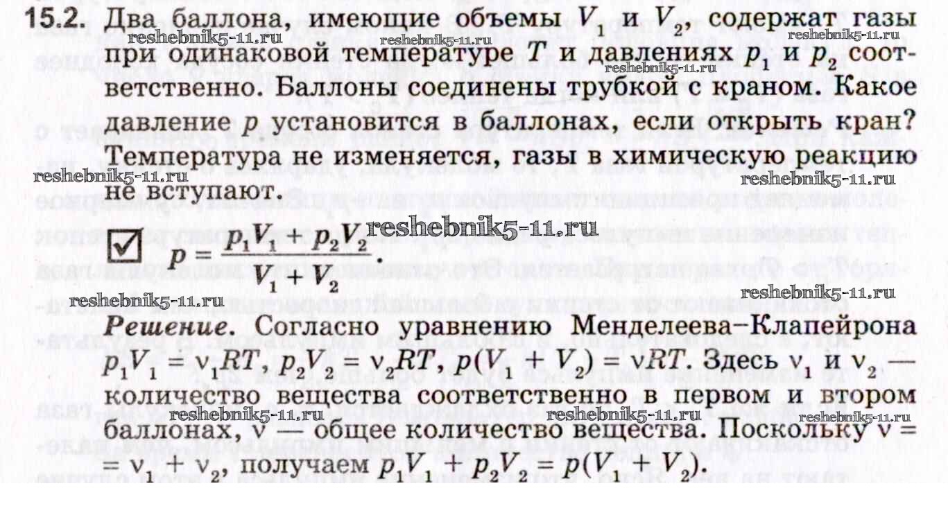 Готовая домашняя работа с ответами по Физике за 10, 11 класс Гельфгат, Генденштейн, Кирик Задачник Профильный уровень Илекса 2021 - 15. Уравнение состояния идеального газа 15.2