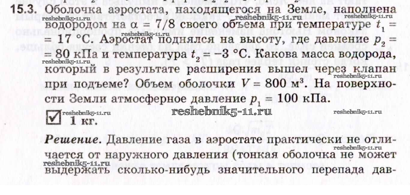 Готовая домашняя работа с ответами по Физике за 10, 11 класс Гельфгат, Генденштейн, Кирик Задачник Профильный уровень Илекса 2021 - 15. Уравнение состояния идеального газа 15.3