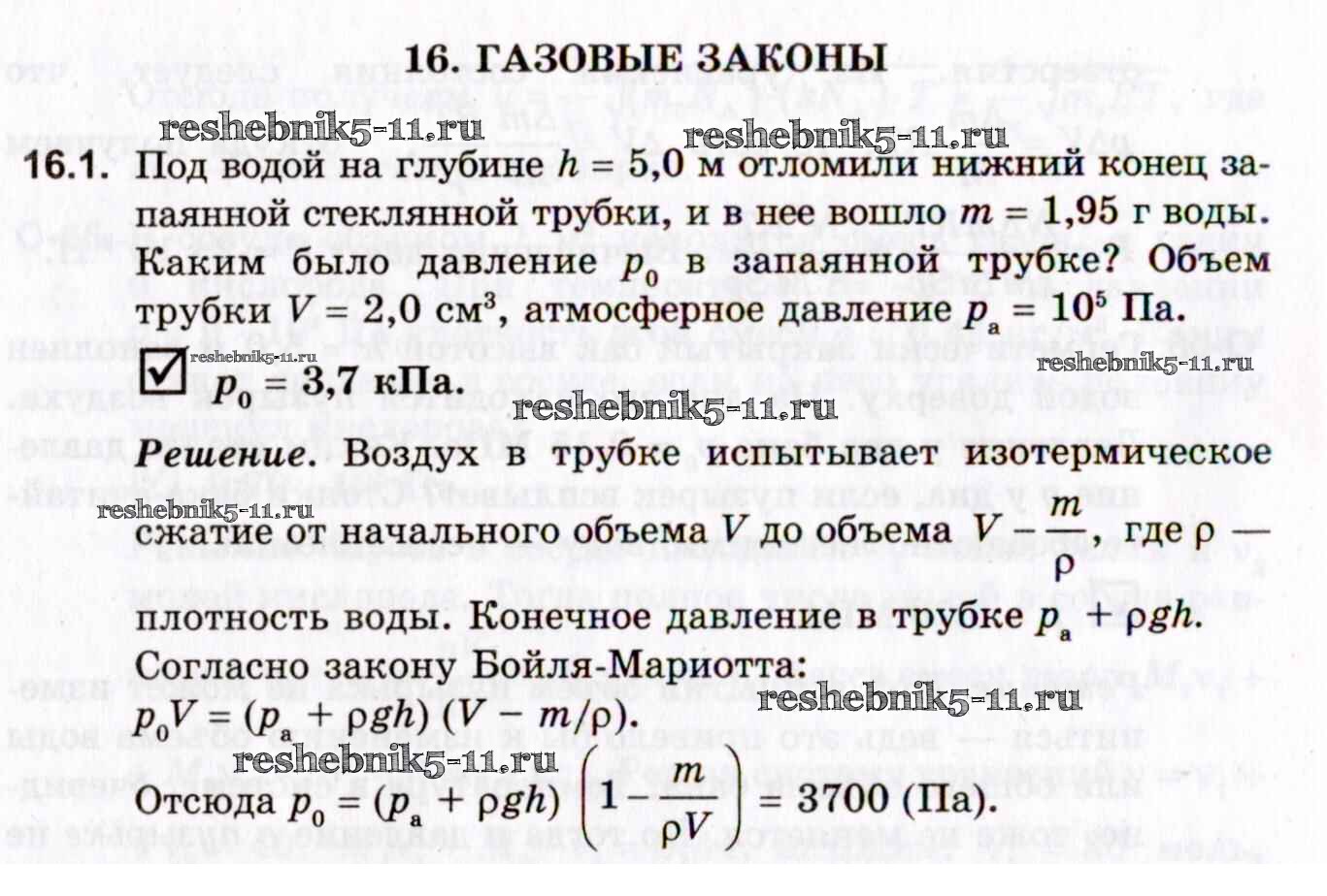 Готовая домашняя работа с ответами по Физике за 10, 11 класс Гельфгат, Генденштейн, Кирик Задачник Профильный уровень Илекса 2021 - 16. Газовые законы 16.1