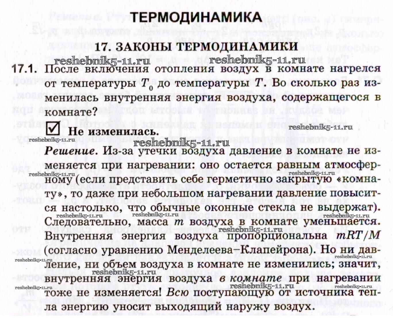 Готовая домашняя работа с ответами по Физике за 10, 11 класс Гельфгат, Генденштейн, Кирик Задачник Профильный уровень Илекса 2021 - 17. Законы термодинамики 17.1