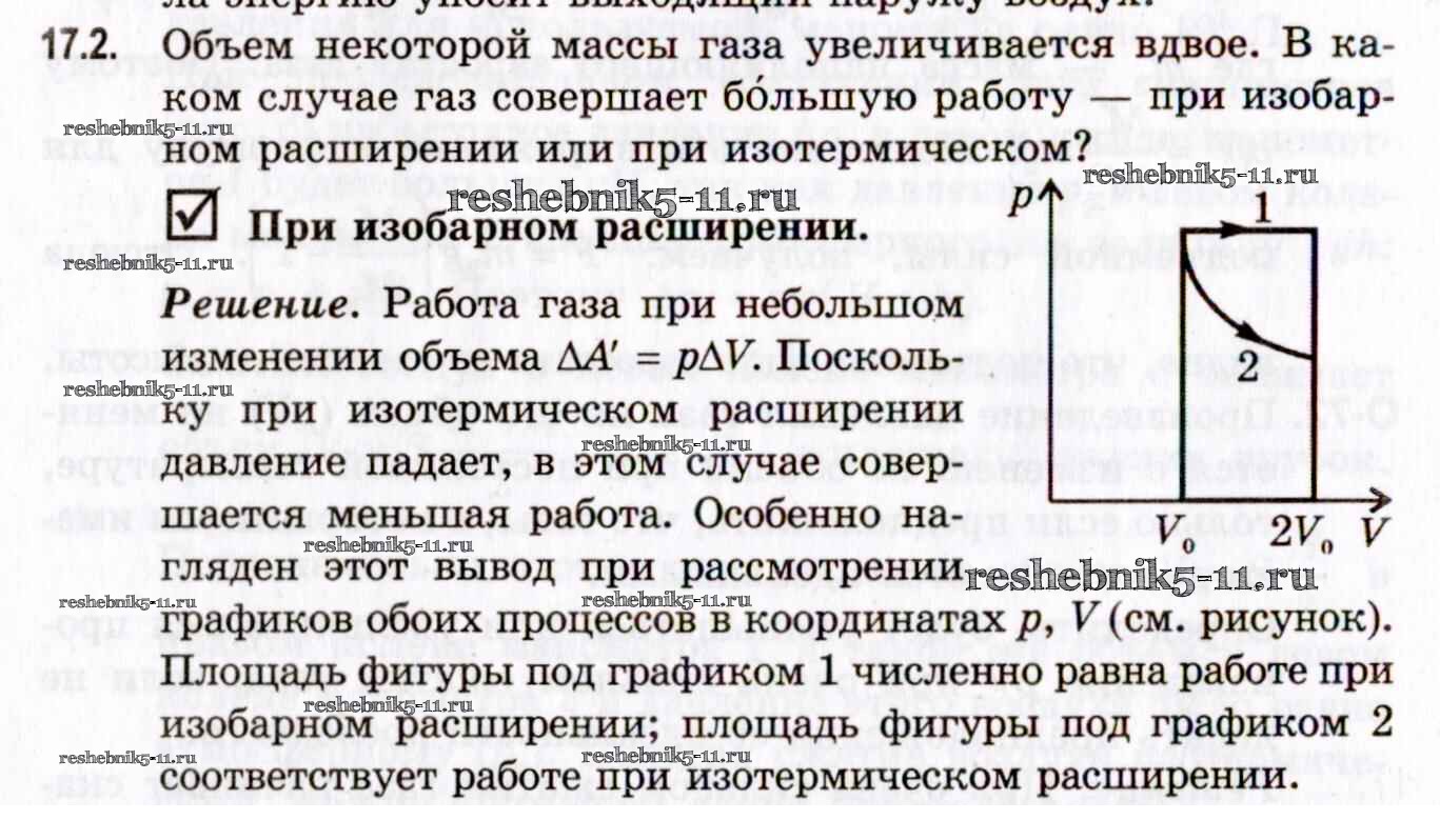 Готовая домашняя работа с ответами по Физике за 10, 11 класс Гельфгат, Генденштейн, Кирик Задачник Профильный уровень Илекса 2021 - 17. Законы термодинамики 17.2