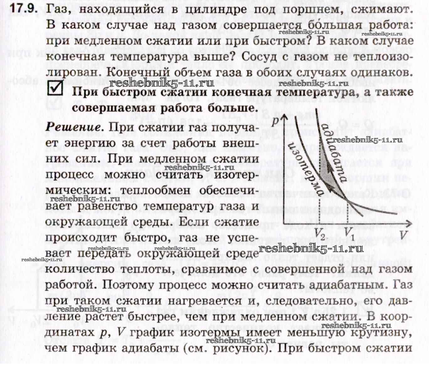 Готовая домашняя работа с ответами по Физике за 10, 11 класс Гельфгат, Генденштейн, Кирик Задачник Профильный уровень Илекса 2021 - 17. Законы термодинамики 17.9