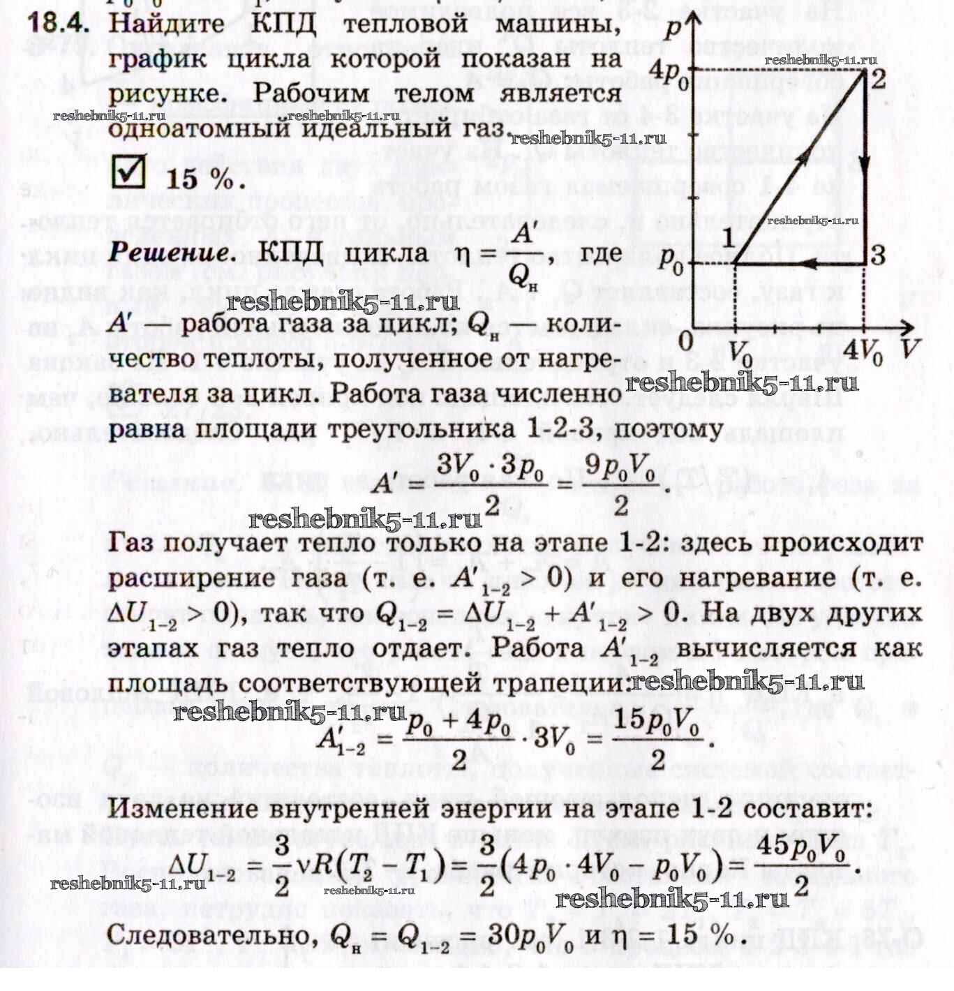 Готовая домашняя работа с ответами по Физике за 10, 11 класс Гельфгат, Генденштейн, Кирик Задачник Профильный уровень Илекса 2021 - 18. Тепловые двигатели 18.4
