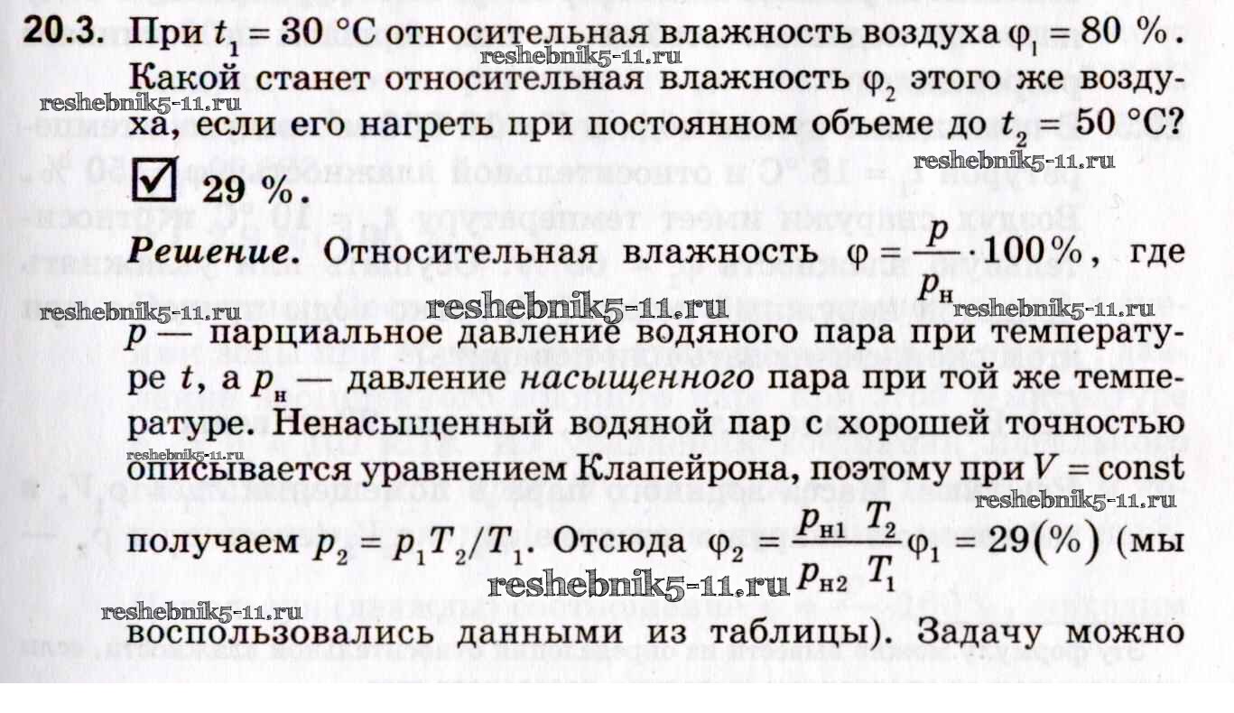 Готовая домашняя работа с ответами по Физике за 10, 11 класс Гельфгат, Генденштейн, Кирик Задачник Профильный уровень Илекса 2021 - 20. Насыщенные и ненасыщенные пары. Влажность воздуха 20.3