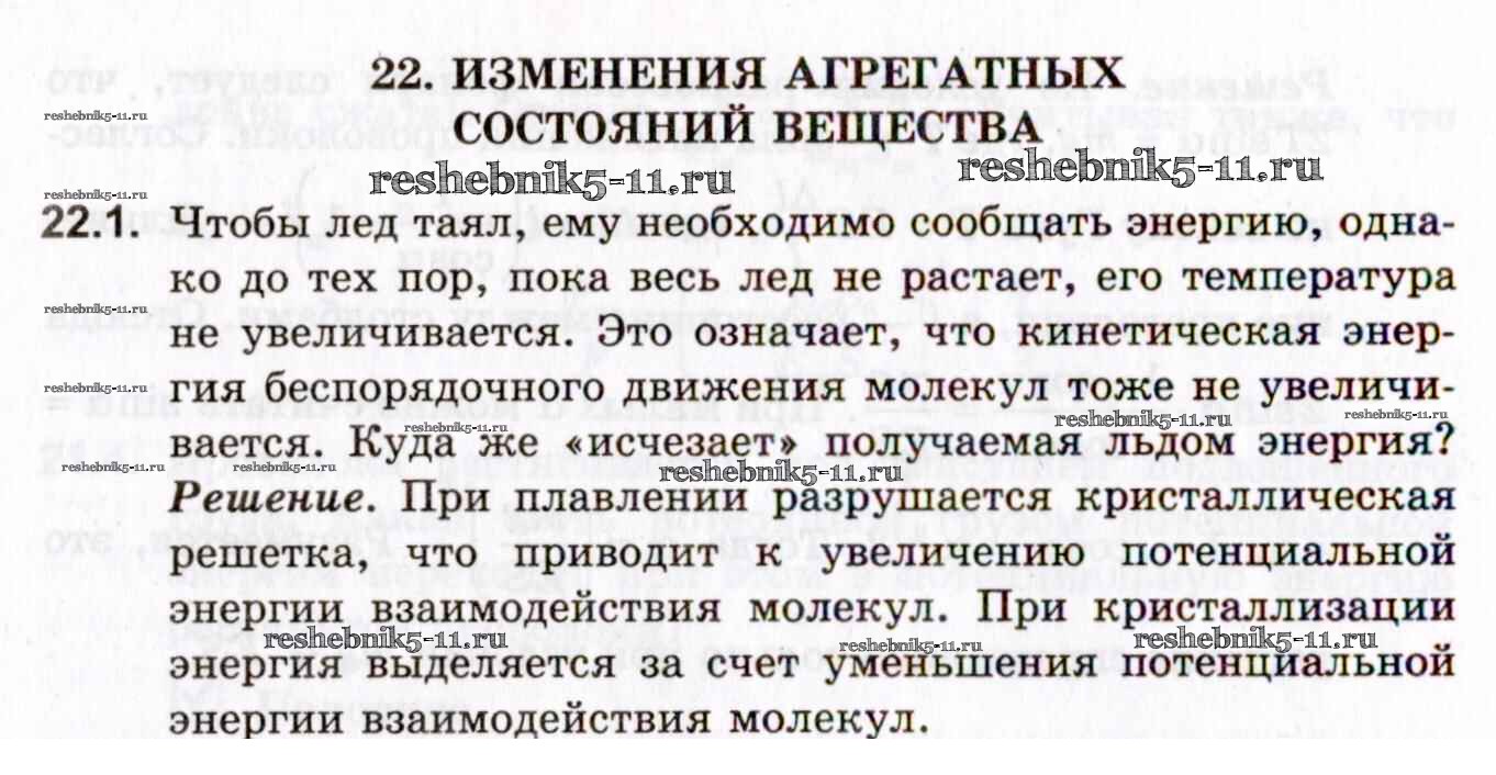 Готовая домашняя работа с ответами по Физике за 10, 11 класс Гельфгат, Генденштейн, Кирик Задачник Профильный уровень Илекса 2021 - 22. Изменения агрегатных состояний вещества 22.1