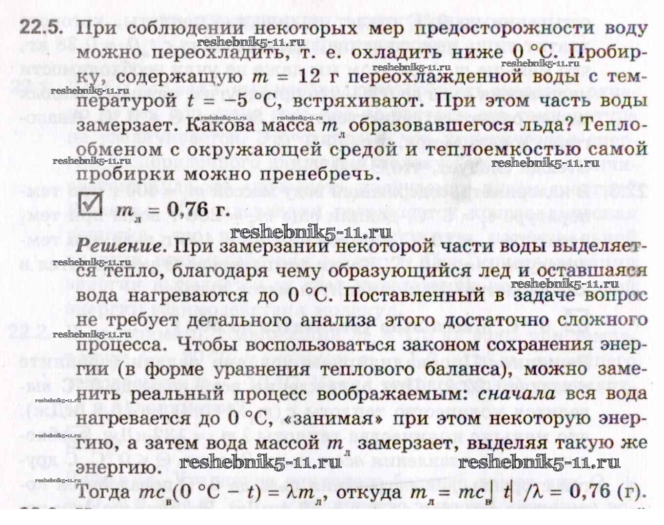 Готовая домашняя работа с ответами по Физике за 10, 11 класс Гельфгат, Генденштейн, Кирик Задачник Профильный уровень Илекса 2021 - 22. Изменения агрегатных состояний вещества 22.5