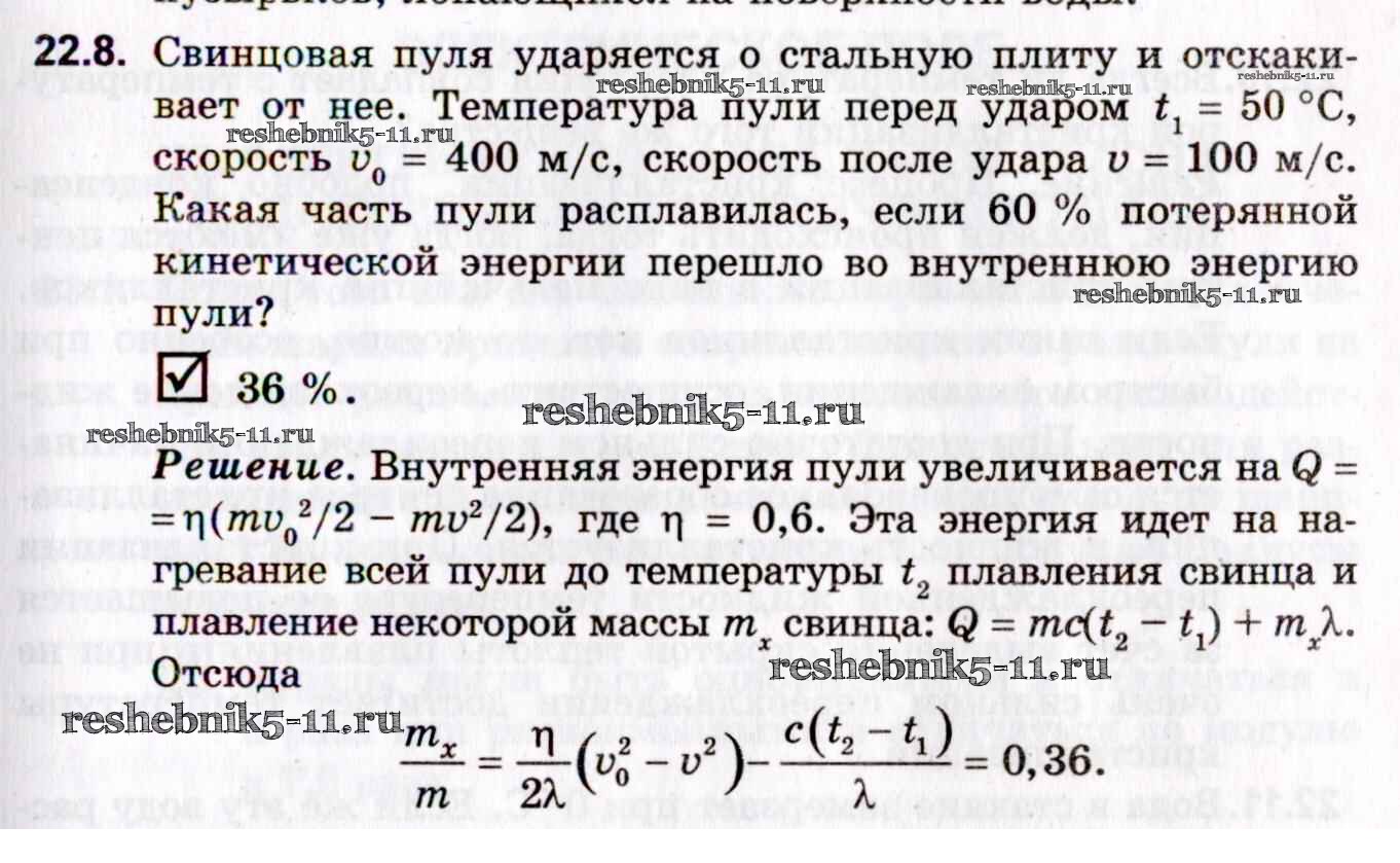 Готовая домашняя работа с ответами по Физике за 10, 11 класс Гельфгат, Генденштейн, Кирик Задачник Профильный уровень Илекса 2021 - 22. Изменения агрегатных состояний вещества 22.8