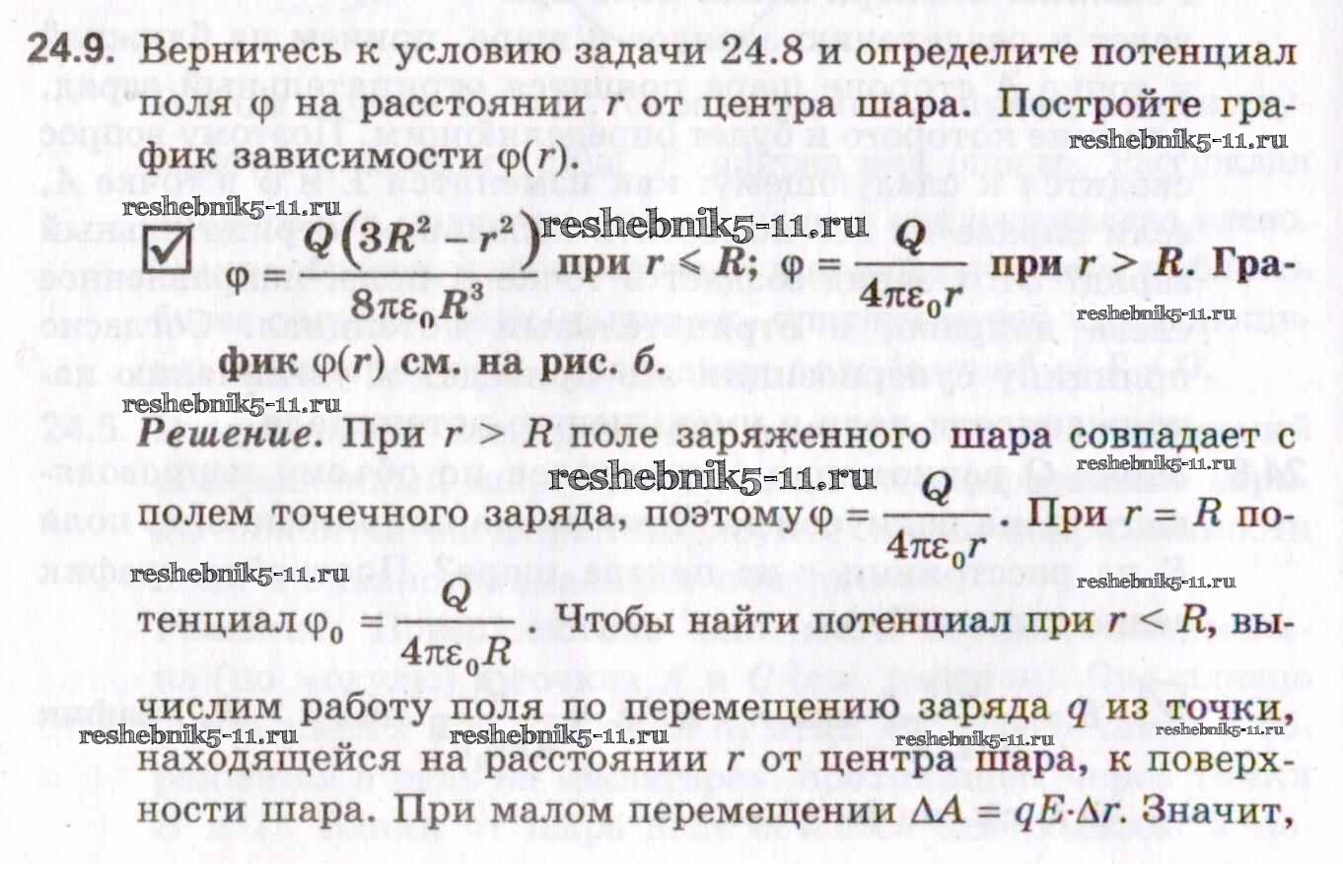 Готовая домашняя работа с ответами по Физике за 10, 11 класс Гельфгат, Генденштейн, Кирик Задачник Профильный уровень Илекса 2021 - 24. Потенциал электрического поля. Проводники и диэлектрики в электрическом поле 24.9