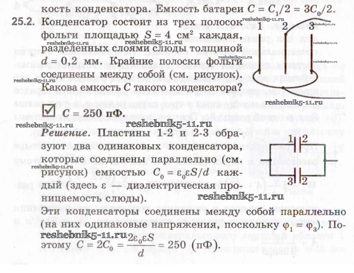 Готовая домашняя работа с ответами по Физике за 10, 11 класс Гельфгат, Генденштейн, Кирик Задачник Профильный уровень Илекса 2021 - 25. Электрическая емкость. Конденсатор. Энергия электрического поля 25.2