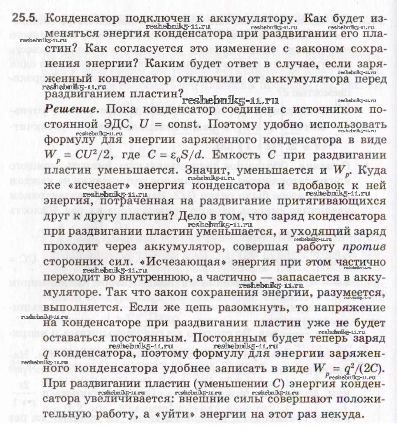 Готовая домашняя работа с ответами по Физике за 10, 11 класс Гельфгат, Генденштейн, Кирик Задачник Профильный уровень Илекса 2021 - 25. Электрическая емкость. Конденсатор. Энергия электрического поля 25.5