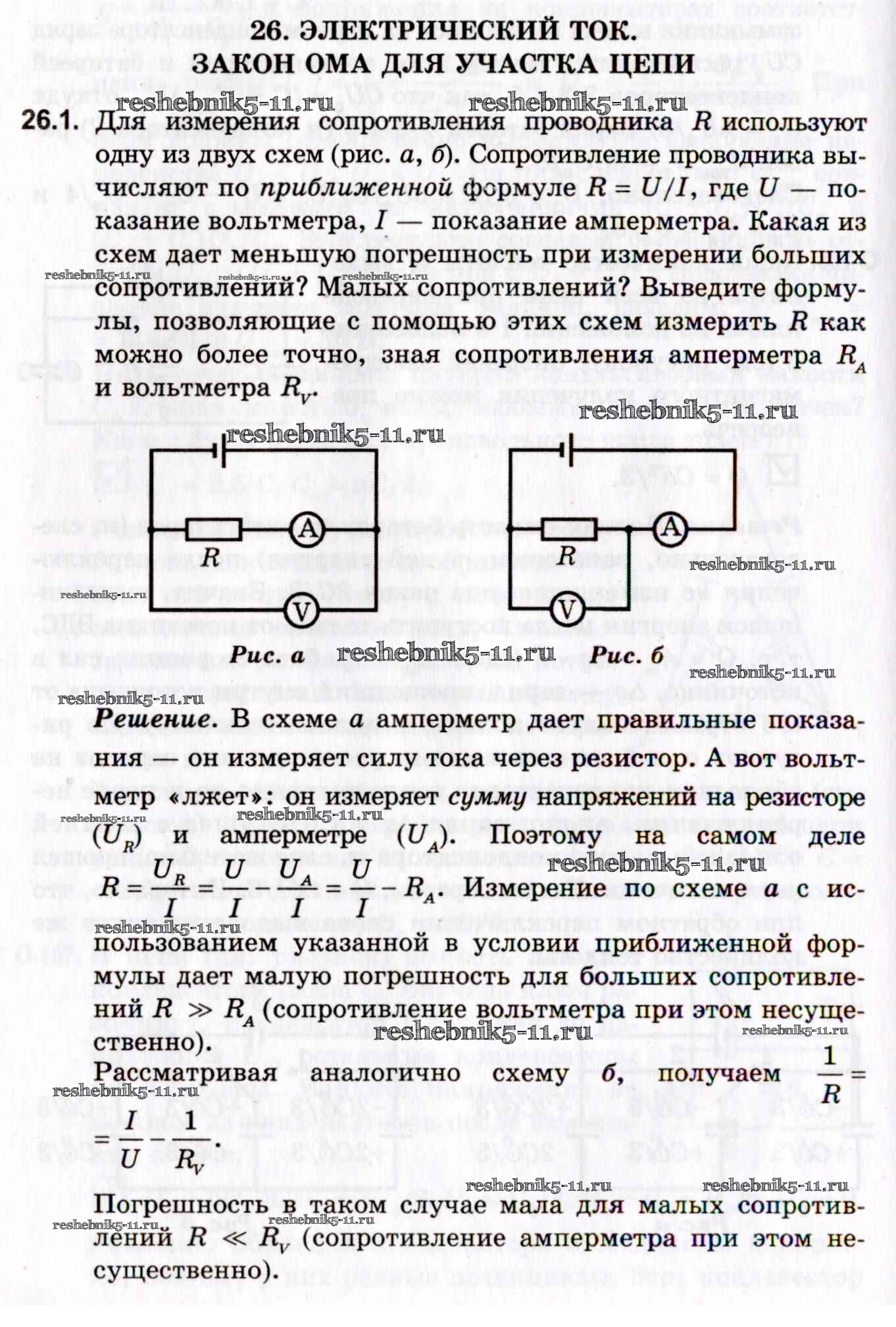 Готовая домашняя работа с ответами по Физике за 10, 11 класс Гельфгат, Генденштейн, Кирик Задачник Профильный уровень Илекса 2021 - 26. Электрический ток. Закон Ома для участка цепи 26.1