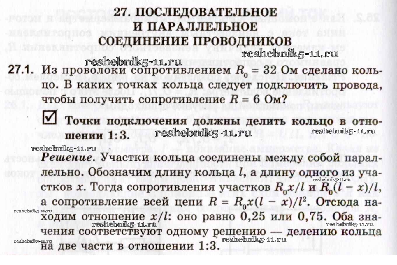Готовая домашняя работа с ответами по Физике за 10, 11 класс Гельфгат, Генденштейн, Кирик Задачник Профильный уровень Илекса 2021 - 27. Последовательное и параллельное соединение проводников 27.1