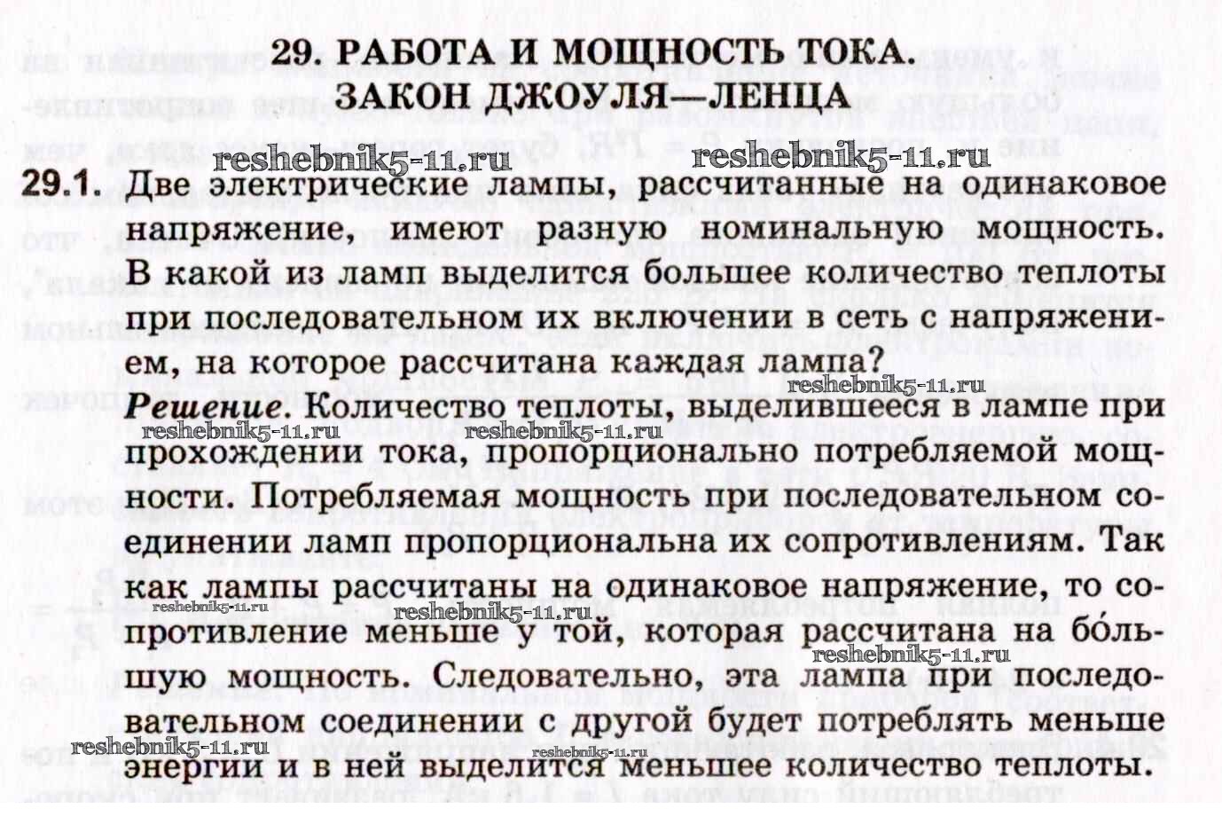 Готовая домашняя работа с ответами по Физике за 10, 11 класс Гельфгат, Генденштейн, Кирик Задачник Профильный уровень Илекса 2021 - 29. Работа и мощность тока. Закон Джоуля-Ленца 29.1