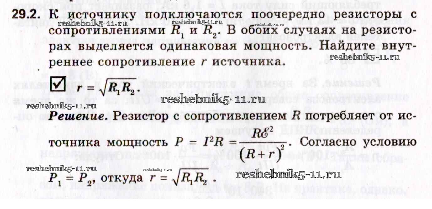 Готовая домашняя работа с ответами по Физике за 10, 11 класс Гельфгат, Генденштейн, Кирик Задачник Профильный уровень Илекса 2021 - 29. Работа и мощность тока. Закон Джоуля-Ленца 29.2