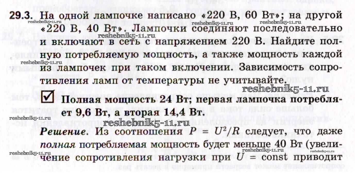 Готовая домашняя работа с ответами по Физике за 10, 11 класс Гельфгат, Генденштейн, Кирик Задачник Профильный уровень Илекса 2021 - 29. Работа и мощность тока. Закон Джоуля-Ленца 29.3