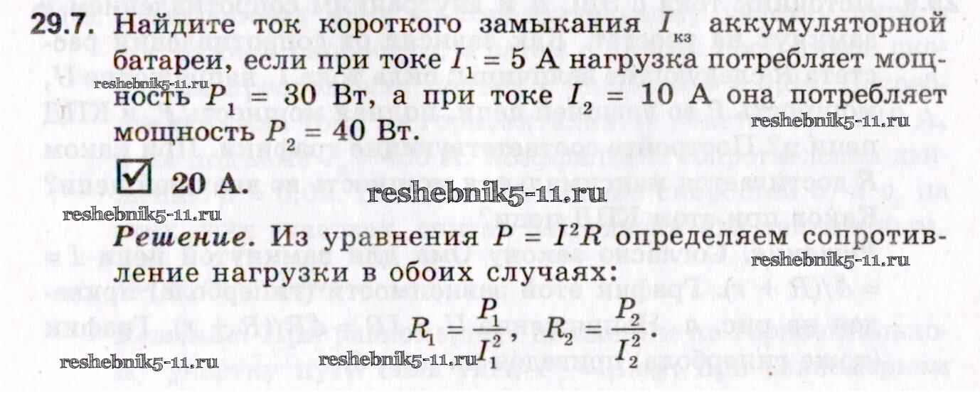 Готовая домашняя работа с ответами по Физике за 10, 11 класс Гельфгат, Генденштейн, Кирик Задачник Профильный уровень Илекса 2021 - 29. Работа и мощность тока. Закон Джоуля-Ленца 29.7