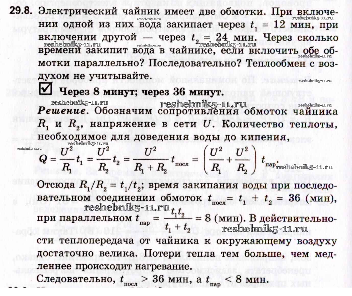 Готовая домашняя работа с ответами по Физике за 10, 11 класс Гельфгат, Генденштейн, Кирик Задачник Профильный уровень Илекса 2021 - 29. Работа и мощность тока. Закон Джоуля-Ленца 29.8