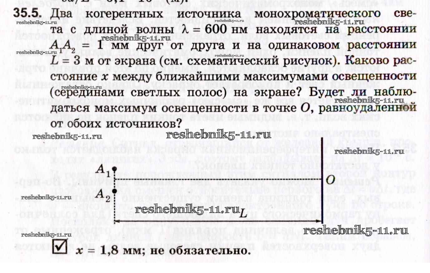 Готовая домашняя работа с ответами по Физике за 10, 11 класс Гельфгат, Генденштейн, Кирик Задачник Профильный уровень Илекса 2021 - 35. Волновые свойства света 35.5