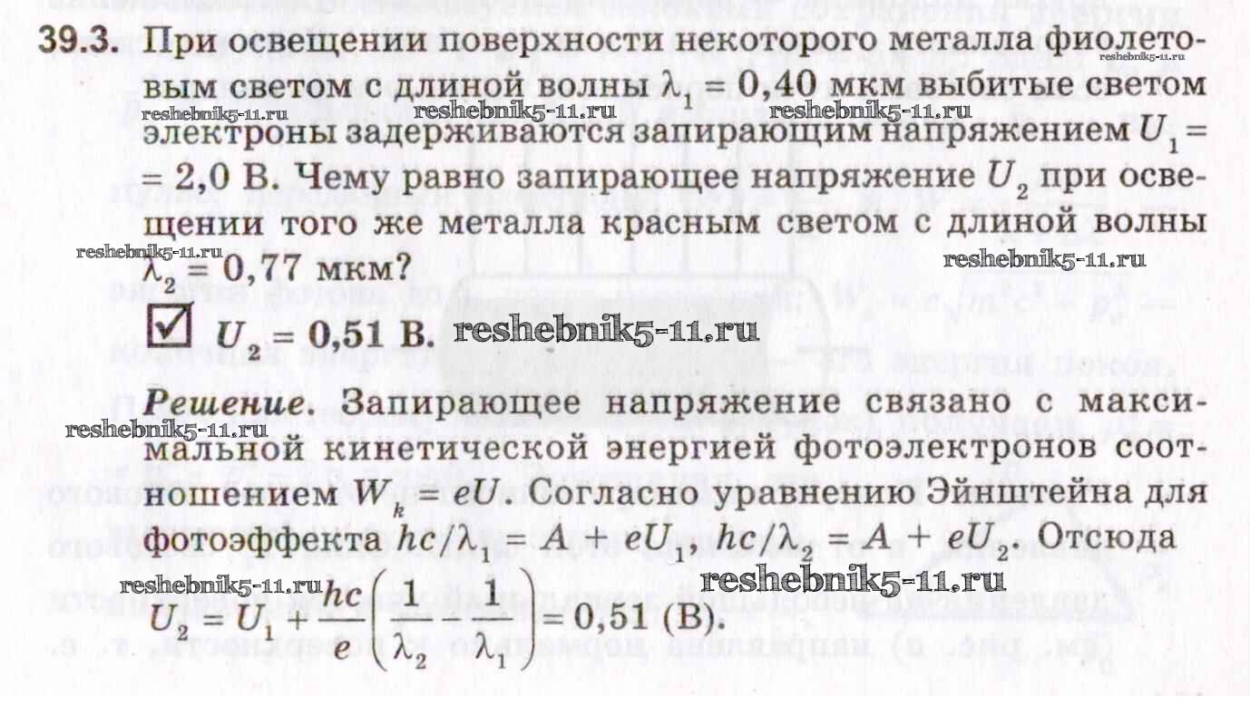 Готовая домашняя работа с ответами по Физике за 10, 11 класс Гельфгат, Генденштейн, Кирик Задачник Профильный уровень Илекса 2021 - 39. Световые кванты 39.3