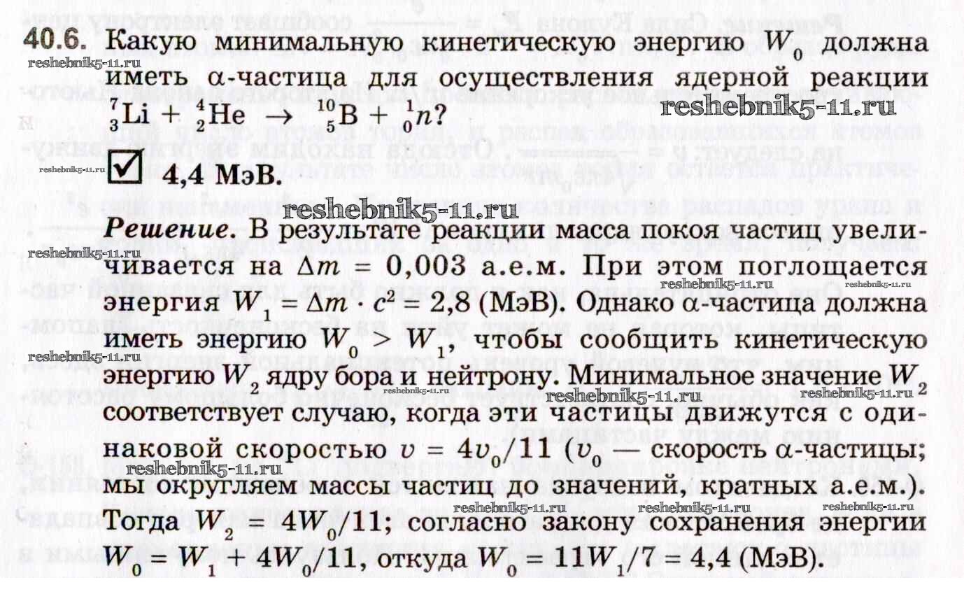 Готовая домашняя работа с ответами по Физике за 10, 11 класс Гельфгат, Генденштейн, Кирик Задачник Профильный уровень Илекса 2021 - 40. Физика атома и атомного ядра 40.6