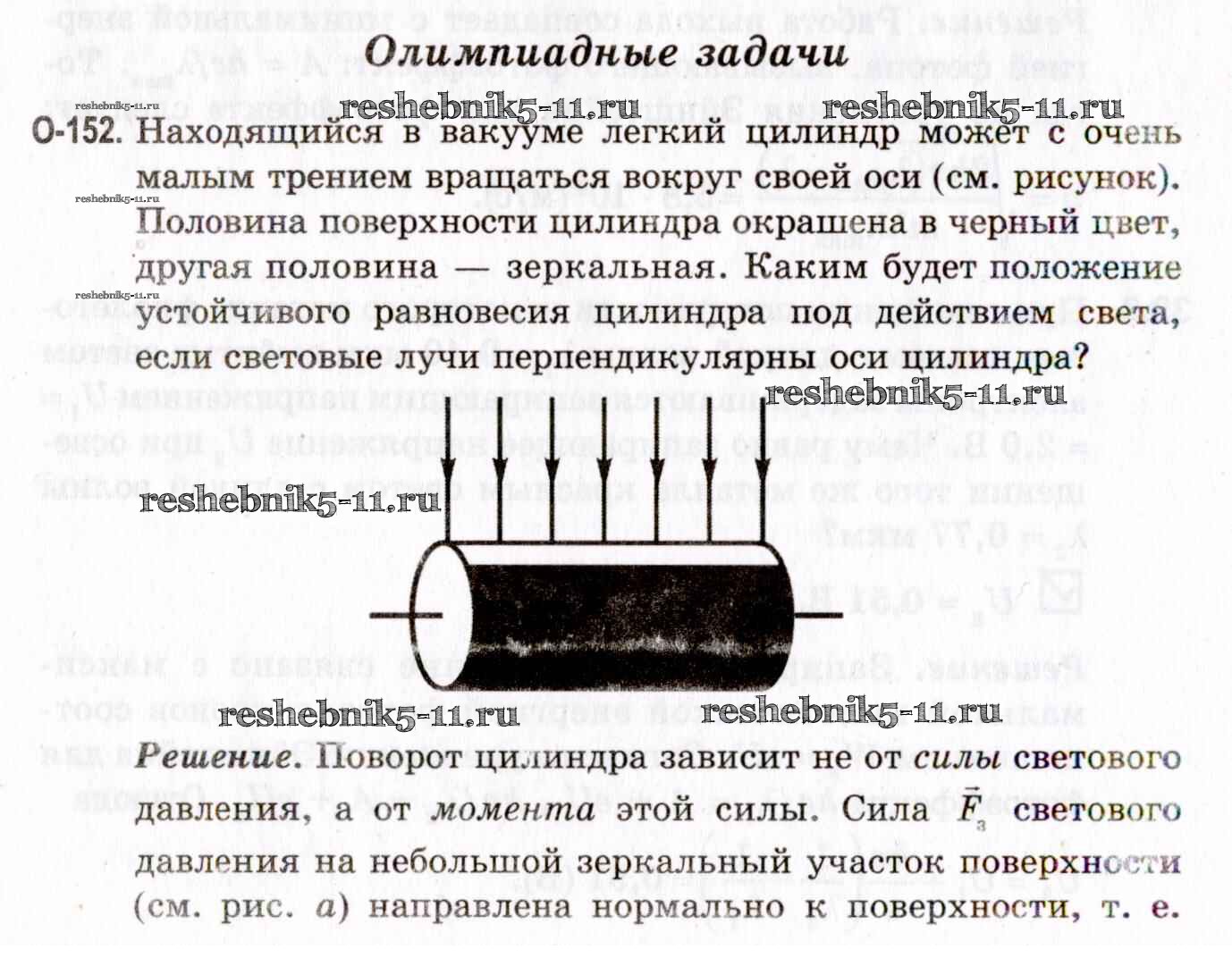 Готовая домашняя работа с ответами по Физике за 10, 11 класс Гельфгат, Генденштейн, Кирик Задачник Профильный уровень Илекса 2021 - Олимпиадные задачи О-152