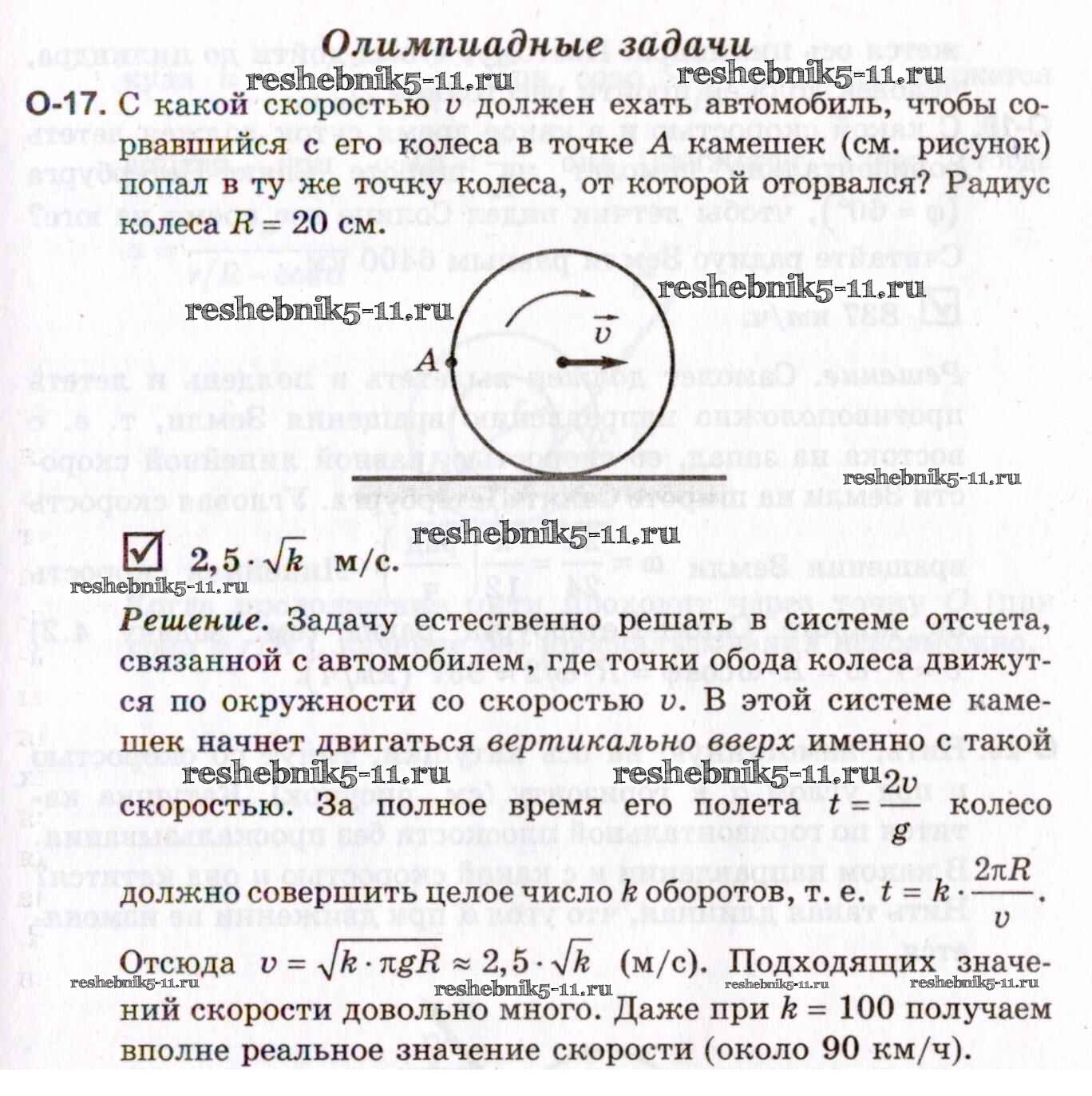 Готовая домашняя работа с ответами по Физике за 10, 11 класс Гельфгат, Генденштейн, Кирик Задачник Профильный уровень Илекса 2021 - Олимпиадные задачи О-17