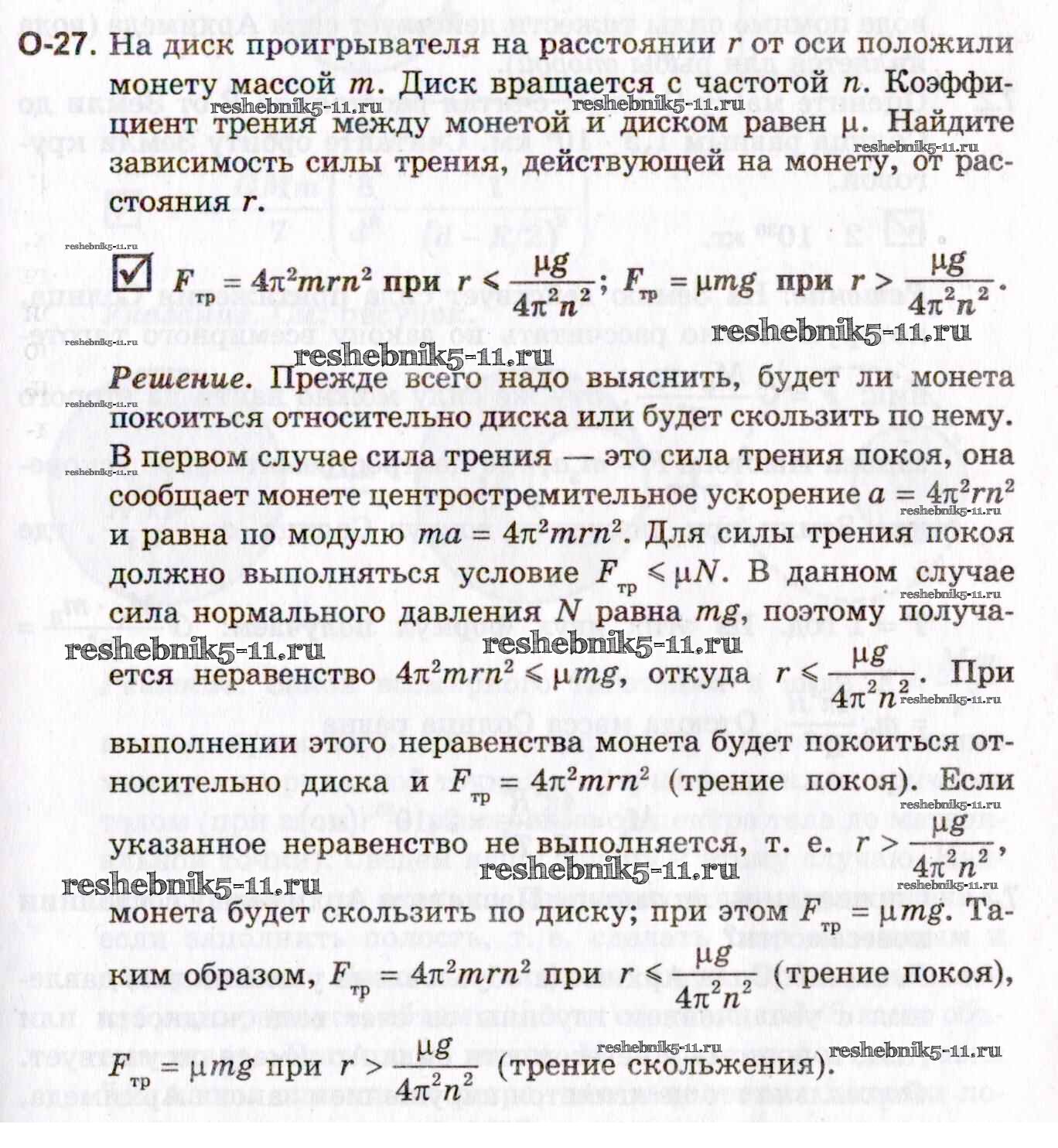Готовая домашняя работа с ответами по Физике за 10, 11 класс Гельфгат, Генденштейн, Кирик Задачник Профильный уровень Илекса 2021 - Олимпиадные задачи О-27