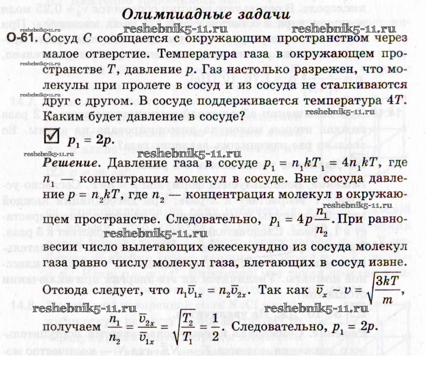 Готовая домашняя работа с ответами по Физике за 10, 11 класс Гельфгат, Генденштейн, Кирик Задачник Профильный уровень Илекса 2021 - Олимпиадные задачи О-61