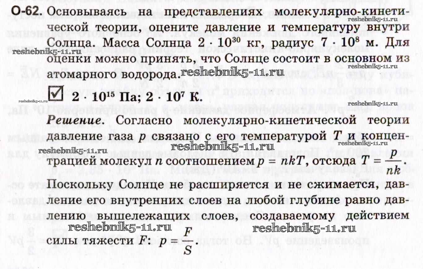Готовая домашняя работа с ответами по Физике за 10, 11 класс Гельфгат, Генденштейн, Кирик Задачник Профильный уровень Илекса 2021 - Олимпиадные задачи О-62