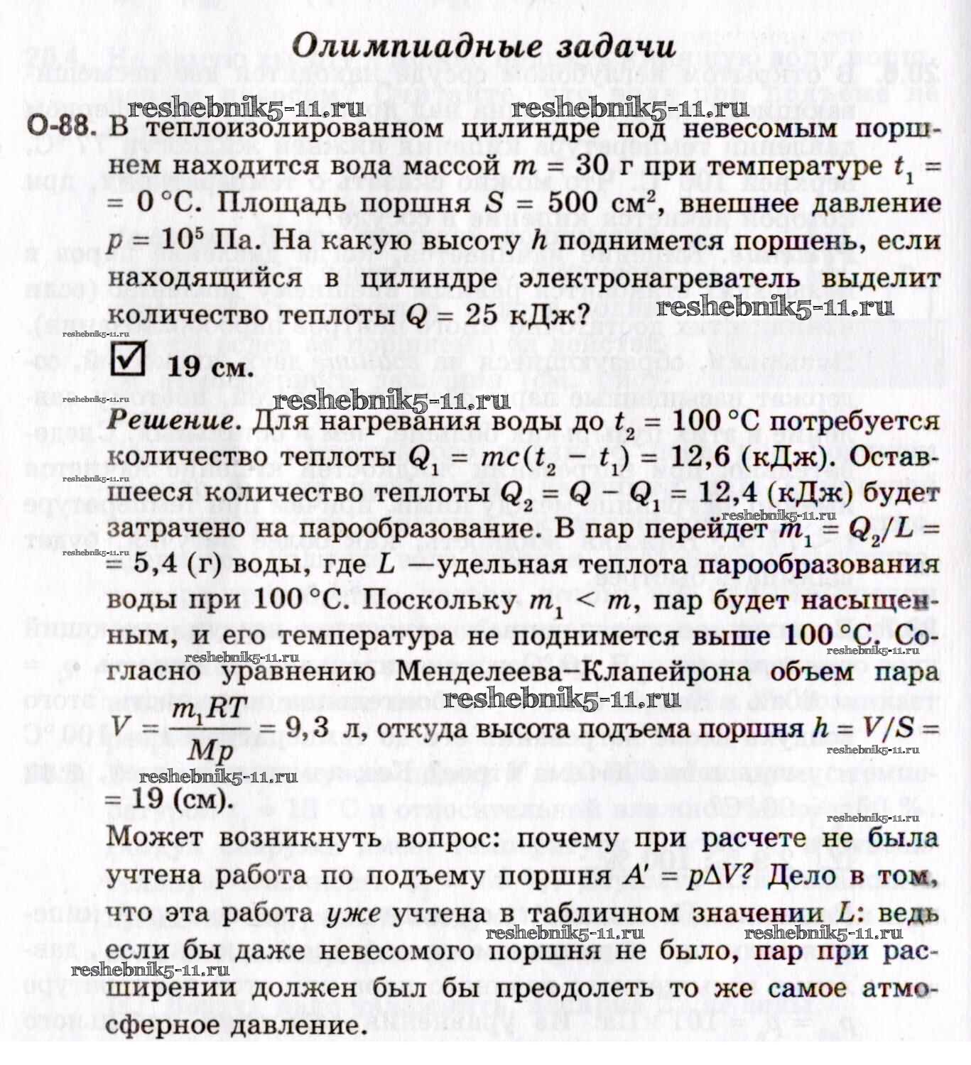 Готовая домашняя работа с ответами по Физике за 10, 11 класс Гельфгат, Генденштейн, Кирик Задачник Профильный уровень Илекса 2021 - Олимпиадные задачи О-88