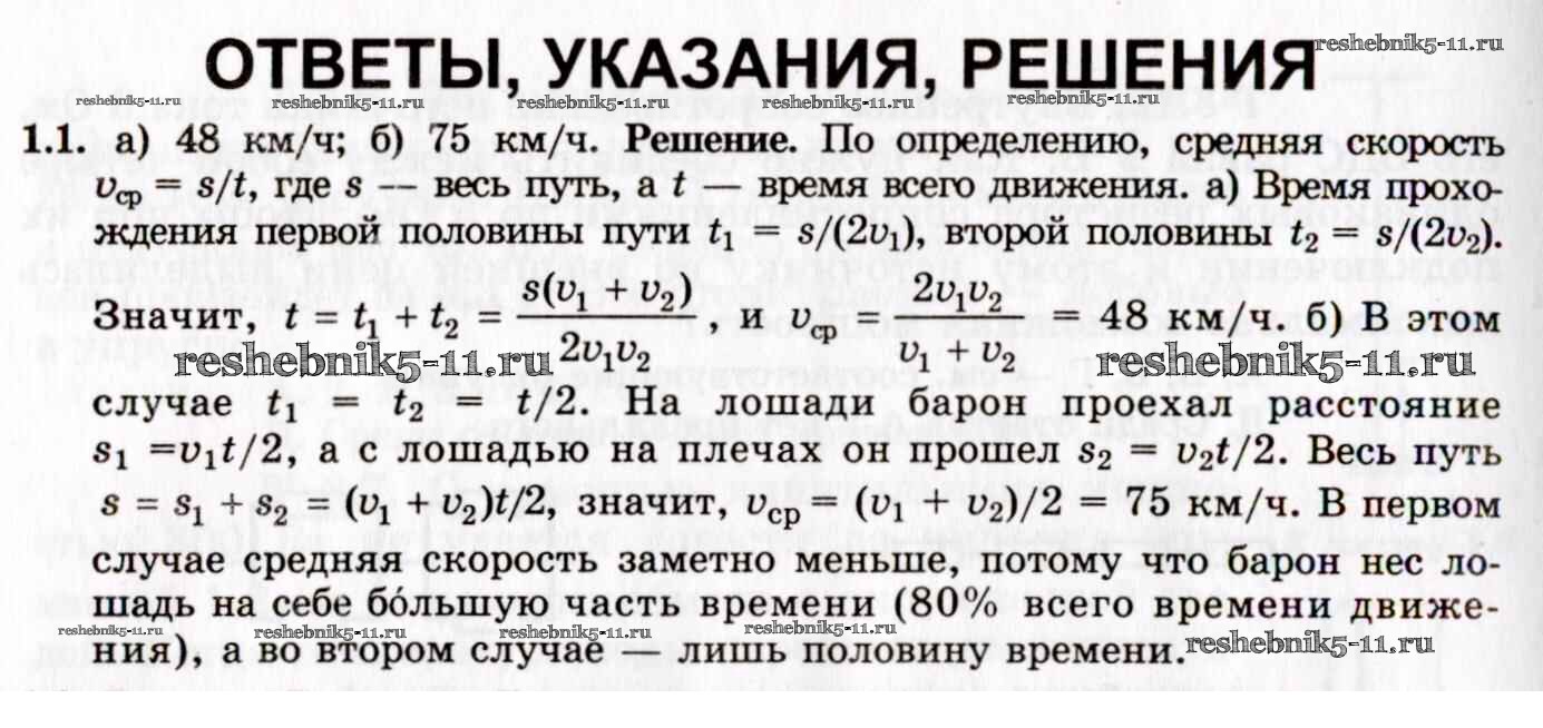 Готовая домашняя работа с ответами по Физике за 8, 9, 10, 11 класс Гельфгат, Генденштейн, Кирик Задачник Илекса 2021 - 1. Кинематика 1.1