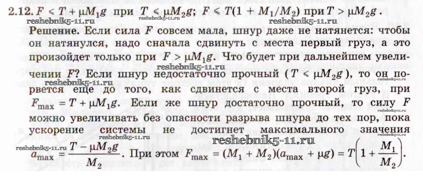 Готовая домашняя работа с ответами по Физике за 8, 9, 10, 11 класс Гельфгат, Генденштейн, Кирик Задачник Илекса 2021 - 2. Законы Ньютона 2.12