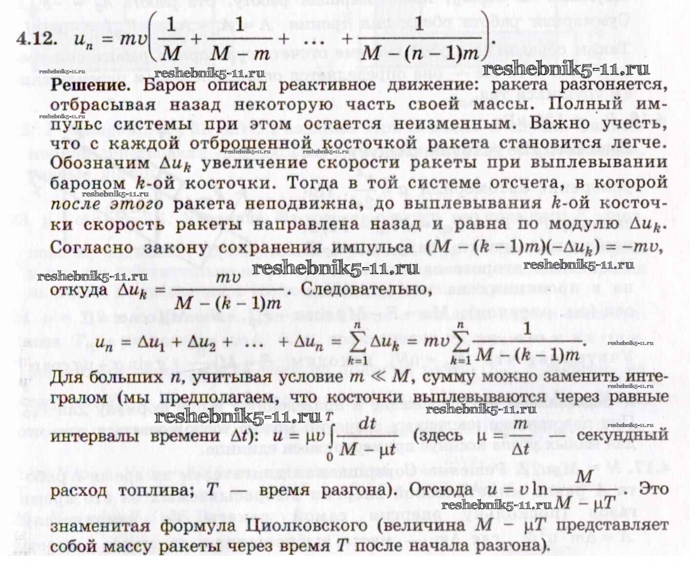 Готовая домашняя работа с ответами по Физике за 8, 9, 10, 11 класс Гельфгат, Генденштейн, Кирик Задачник Илекса 2021 - 4. Импульс, работа, энергия. Законы сохранения 4.12