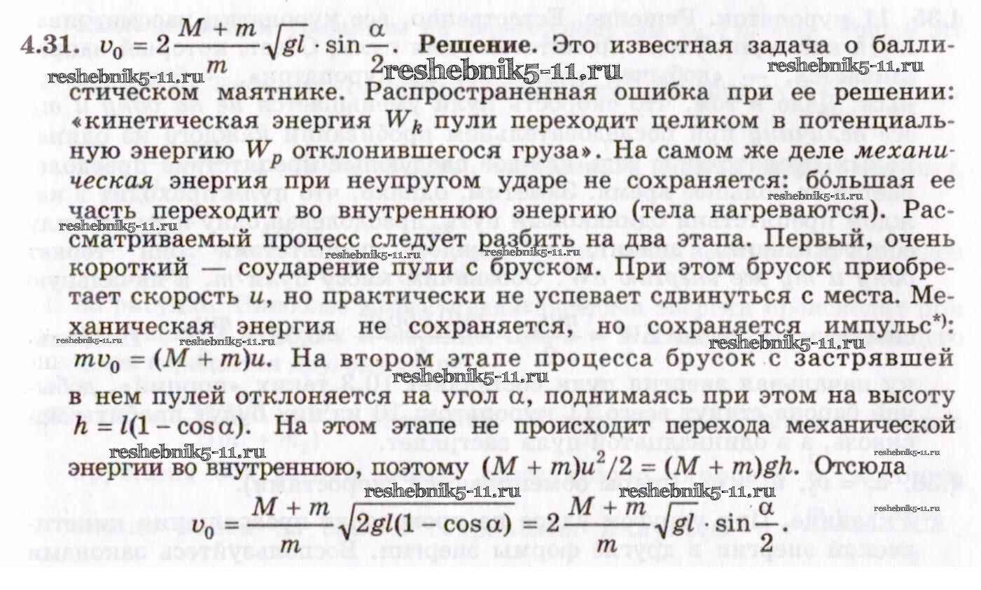Готовая домашняя работа с ответами по Физике за 8, 9, 10, 11 класс Гельфгат, Генденштейн, Кирик Задачник Илекса 2021 - 4. Импульс, работа, энергия. Законы сохранения 4.31