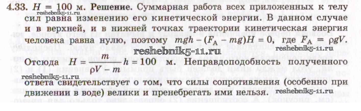 Готовая домашняя работа с ответами по Физике за 8, 9, 10, 11 класс Гельфгат, Генденштейн, Кирик Задачник Илекса 2021 - 4. Импульс, работа, энергия. Законы сохранения 4.33