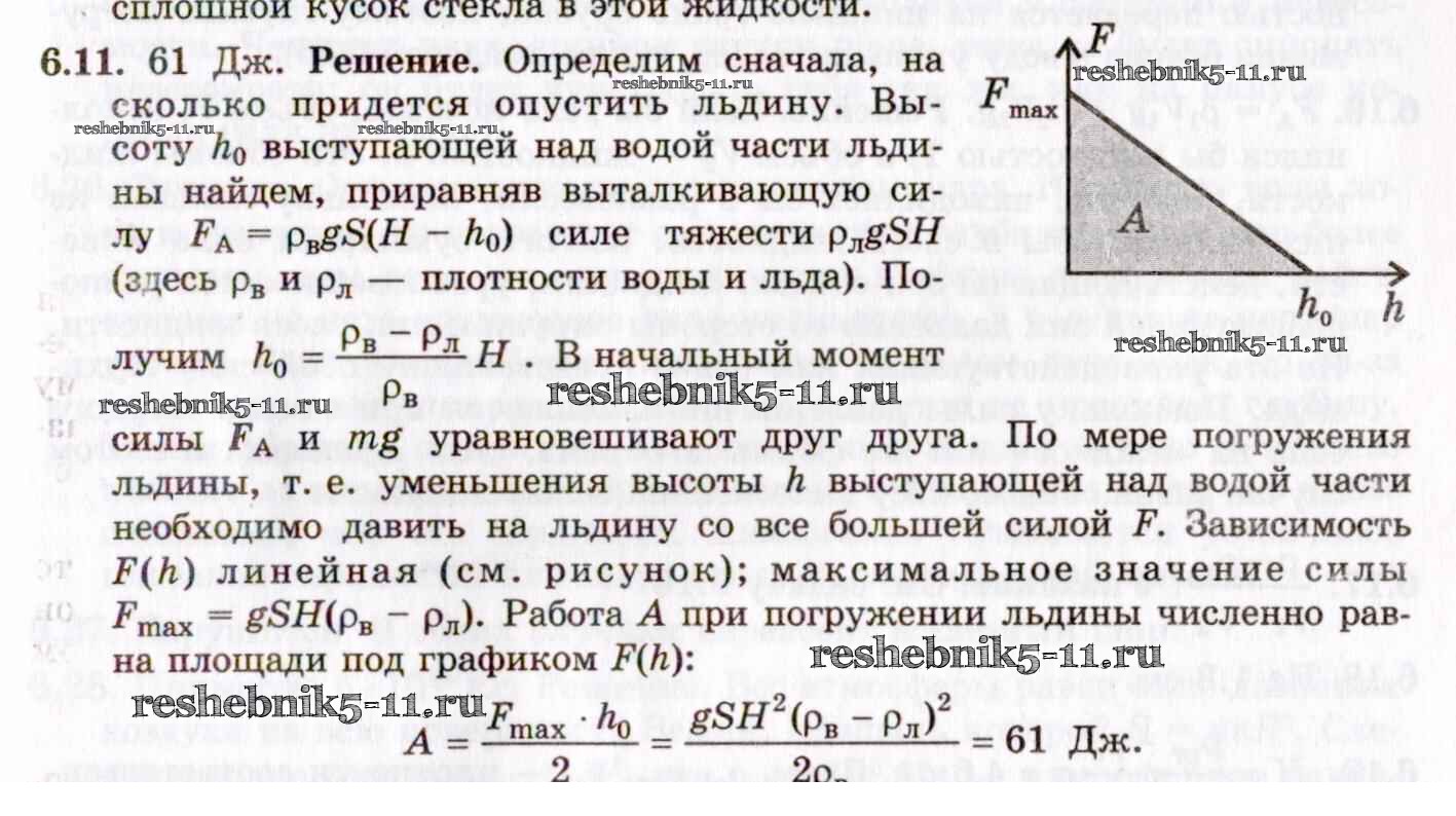 Готовая домашняя работа с ответами по Физике за 8, 9, 10, 11 класс Гельфгат, Генденштейн, Кирик Задачник Илекса 2021 - 6. Гидростатика и аэростатика 6.11