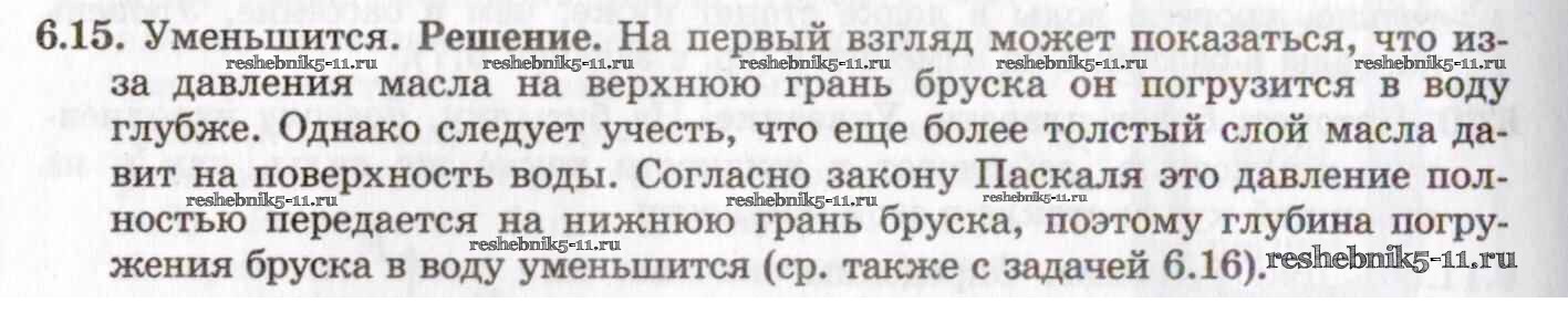 Готовая домашняя работа с ответами по Физике за 8, 9, 10, 11 класс Гельфгат, Генденштейн, Кирик Задачник Илекса 2021 - 6. Гидростатика и аэростатика 6.15