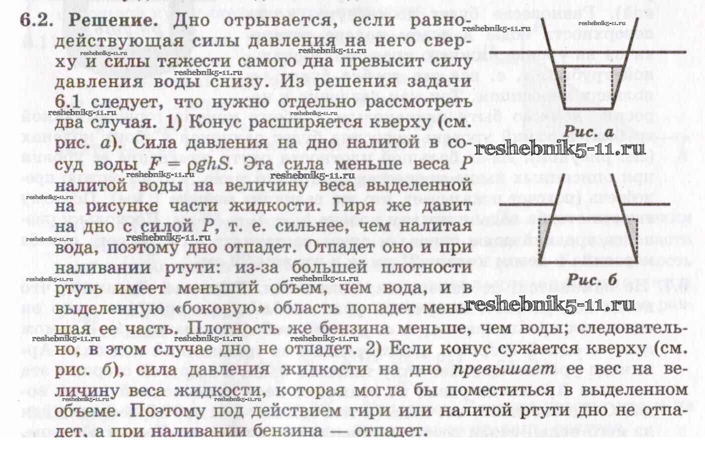 Готовая домашняя работа с ответами по Физике за 8, 9, 10, 11 класс Гельфгат, Генденштейн, Кирик Задачник Илекса 2021 - 6. Гидростатика и аэростатика 6.2