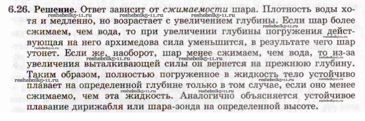 Готовая домашняя работа с ответами по Физике за 8, 9, 10, 11 класс Гельфгат, Генденштейн, Кирик Задачник Илекса 2021 - 6. Гидростатика и аэростатика 6.26