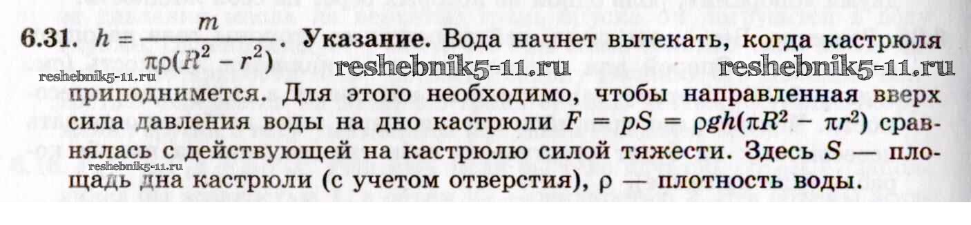 Готовая домашняя работа с ответами по Физике за 8, 9, 10, 11 класс Гельфгат, Генденштейн, Кирик Задачник Илекса 2021 - 6. Гидростатика и аэростатика 6.31