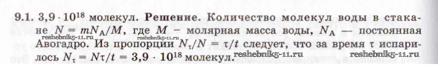 Готовая домашняя работа с ответами по Физике за 8, 9, 10, 11 класс Гельфгат, Генденштейн, Кирик Задачник Илекса 2021 - 9. Молекулярно-кинетическая теория. Свойства газов 9.1