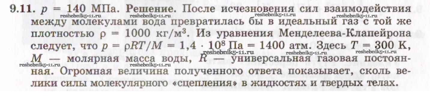 Готовая домашняя работа с ответами по Физике за 8, 9, 10, 11 класс Гельфгат, Генденштейн, Кирик Задачник Илекса 2021 - 9. Молекулярно-кинетическая теория. Свойства газов 9.11